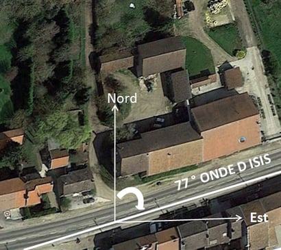 L'orientation de la rue principale du village est de 77° Est, ce qui correspond à l'Onde d'Isis.